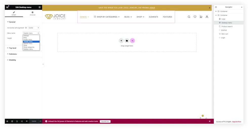 Create with FREE elementor version