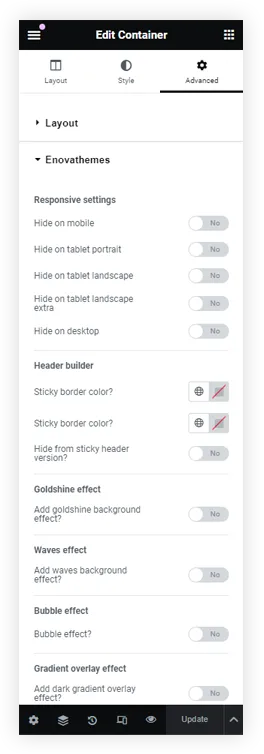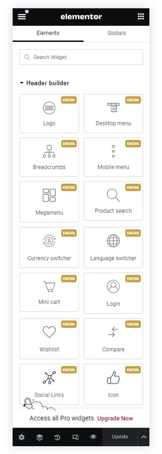 Built-in elementor custom enova widgets